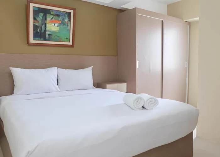 An equipped kitchenette is provided at Strategic 1Br At Bassura City Apartment By Travelio Halim Perdanakusuma airport is at a 10-minute driving distance, and Pasar Enjo bus stop is within a few blocks of Strategic 1Br At Bassura City Apartment By Travelio.